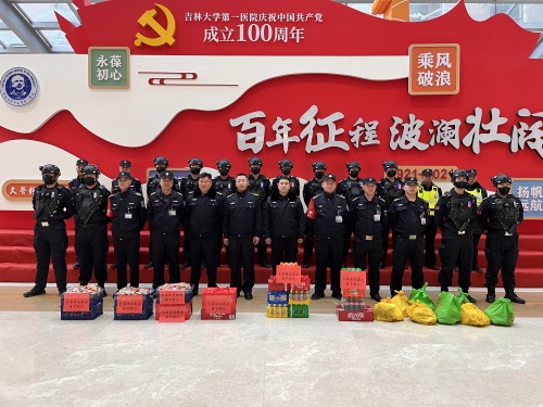 在吉林大學(xué)第三醫(yī)院,慰問組對所有堅守崗位的保安員們送上春節(jié)的慰問和敬意。于總認(rèn)真聽取了駐勤保安隊長對崗點春節(jié)期間人員配備、應(yīng)急預(yù)案等具體工作的情況匯報。于總強(qiáng)調(diào),春節(jié)期間,醫(yī)護(hù)工作者依然堅守在工作崗位上,守護(hù)著人民群眾的生命健康與安全,我們更要做到毫不放松、嚴(yán)之再嚴(yán)、細(xì)之再細(xì),與醫(yī)院攜手并肩,以銅墻鐵壁之堅保障醫(yī)院平安。